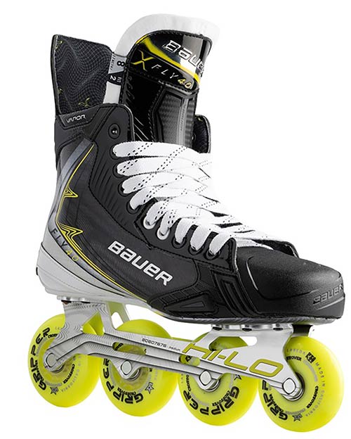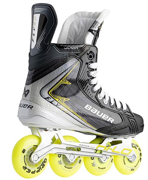 Il Bauer Vapor Fly40 Inline Roller Hockey Skate Intermediate e stato sviluppato per giocatori ambiziosi che cercano un mix equilibrato di comfort, stabilita e trasmissione diretta della potenza sulla pista. Come modello intermediate, e pensato in modo particolare per i giocatori che si trovano tra le classiche misure junior e senior, risultando quindi una soluzione adatta per questa importante categoria di taglia.