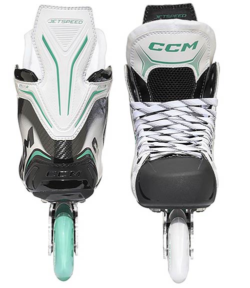 Nella parte inferiore, il CCM Jetspeed FT870 utilizza un telaio Two Piece Aluminum. Il telaio in alluminio a due pezzi e progettato per essere leggero e allo stesso tempo offrire un buon equilibrio tra agilita e stabilita. In questo modo il pattino rimane maneggevole e controllabile senza rinunciare al supporto necessario.