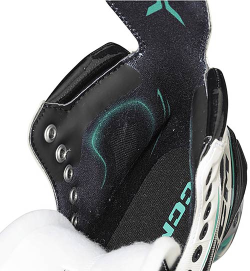 Per la zona della caviglia, CCM utilizza ADPT Memory Foam. Questa schiuma multistrato con densita differenti crea una piacevole sensazione interna e migliora la calzata attorno alla caviglia. Il risultato e una vestibilita sicura che combina in modo efficace comfort e stabilita.