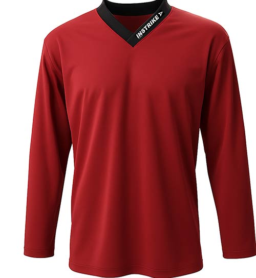 Maglia particolarmente resistente, ideale per allenare hockey o hockey in linea con solo un piccolo marchio del produttore che non interferisce sul collo.